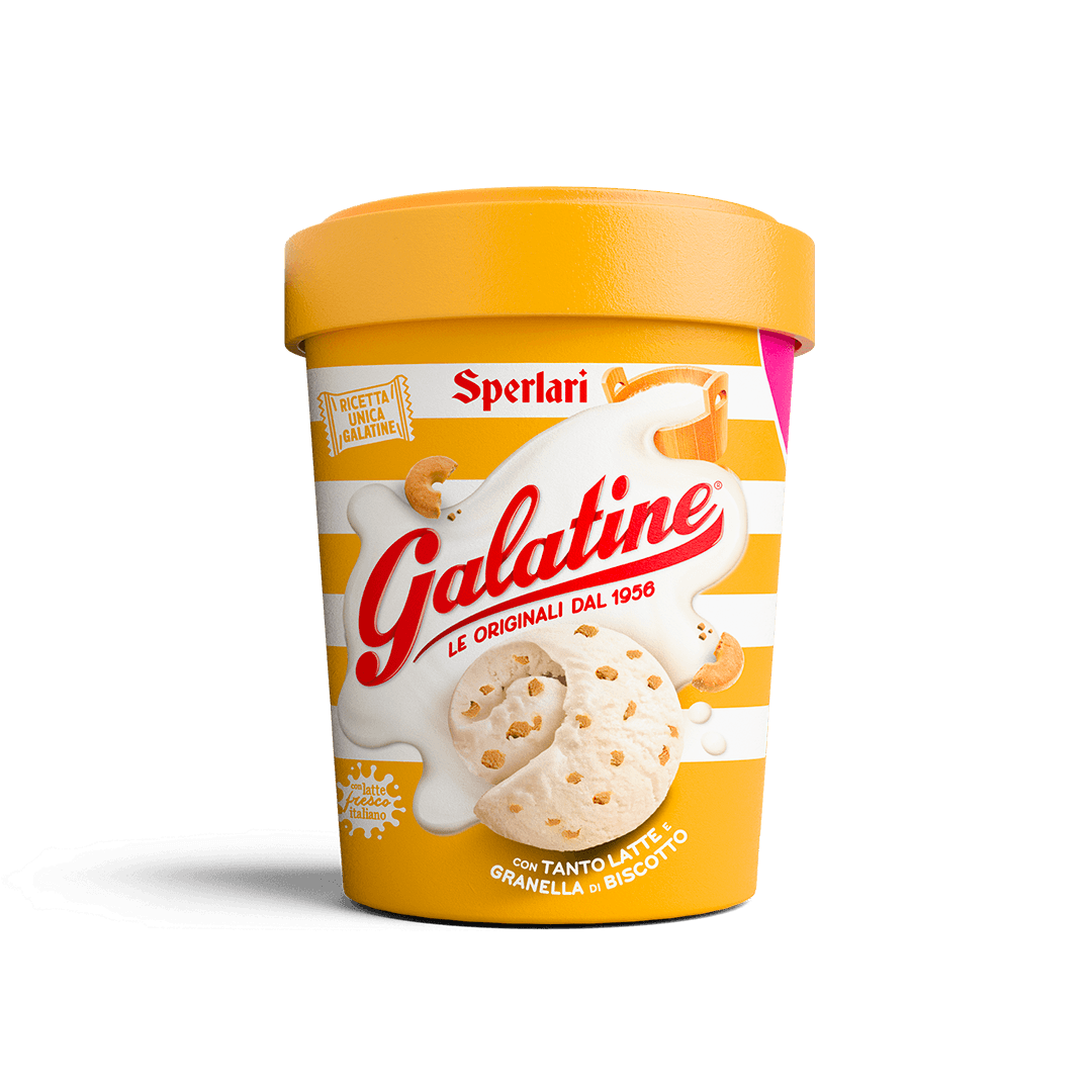 After the success of Galatine Gelato, the range expands with the new Biscuit flavor, joining Fiordilatte, Stracciatella and Strawberry. A collection that brings a beloved classic into the frozen world, celebrating quality, tradition, and creativity.